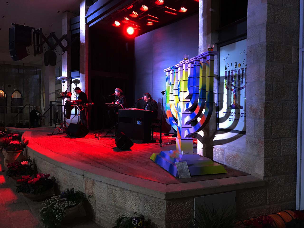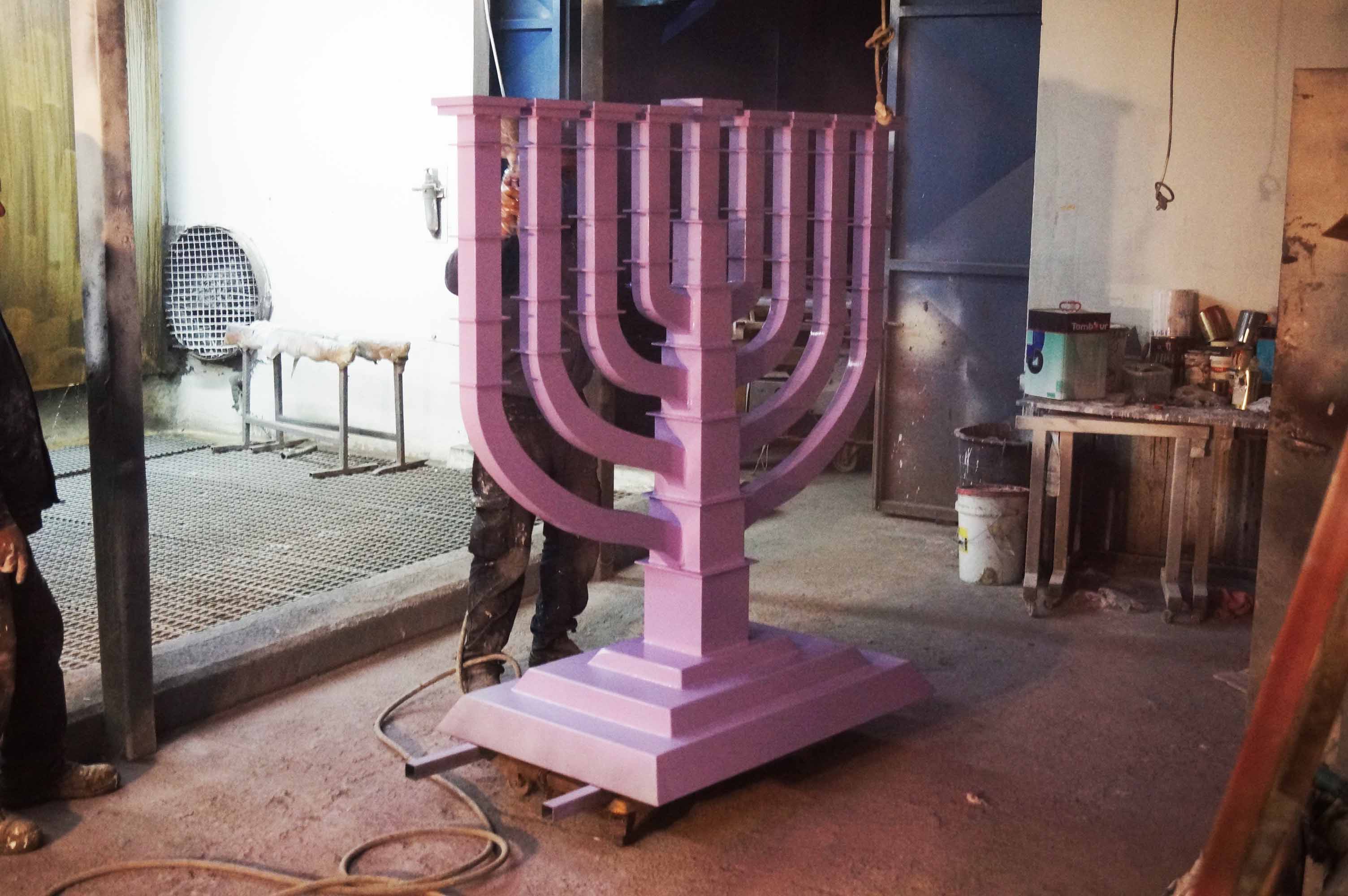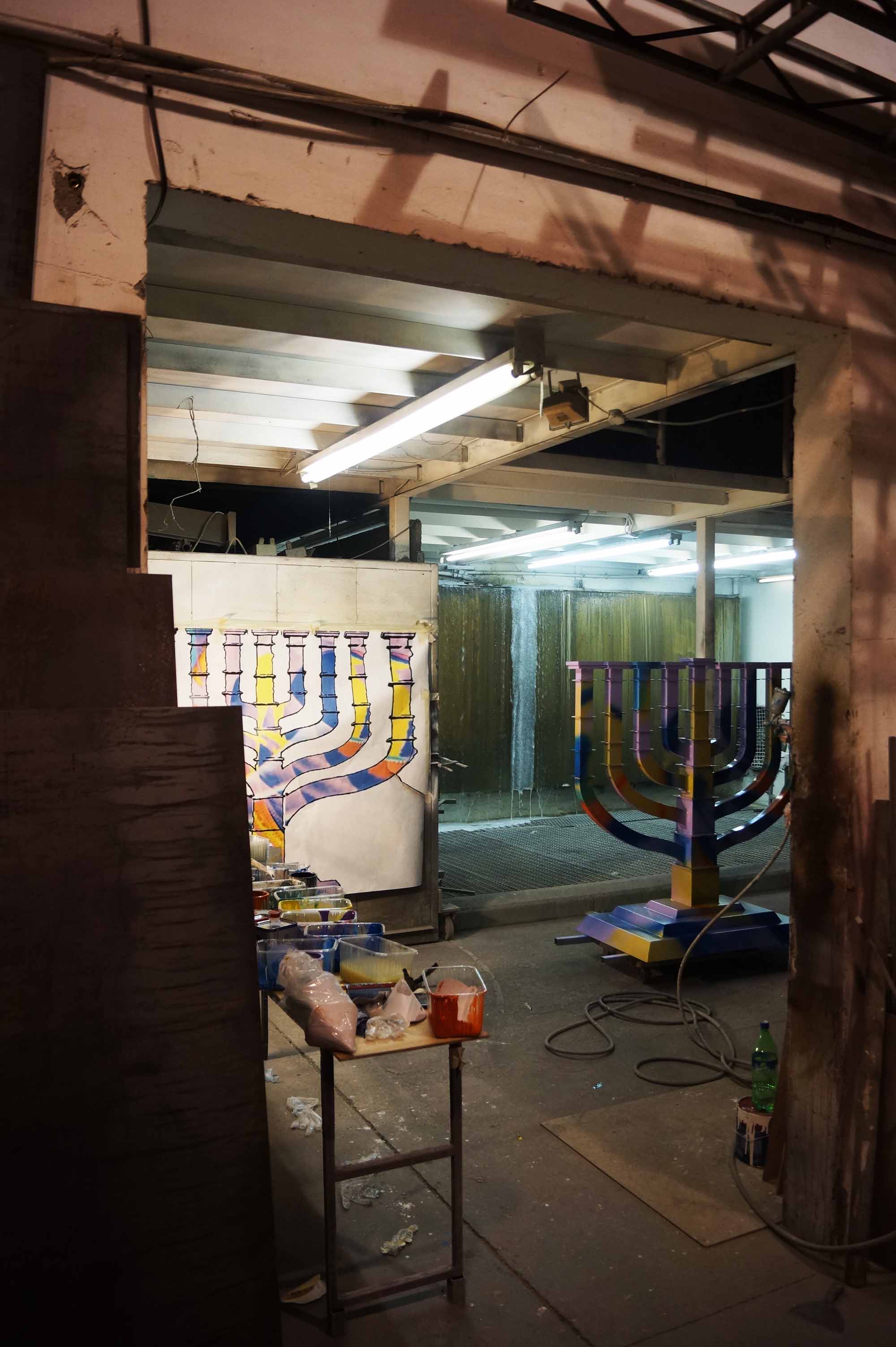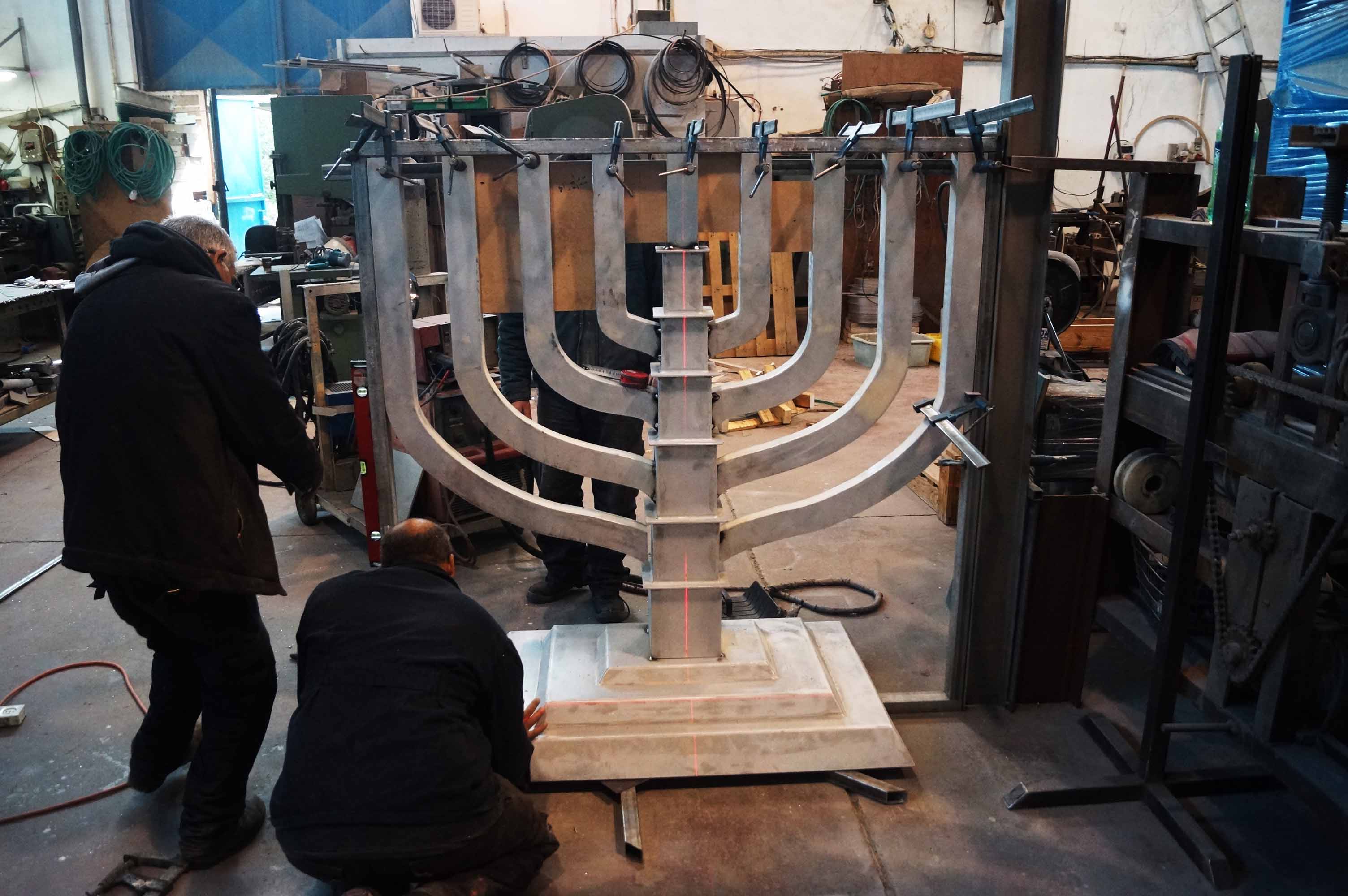 בניית חנוכיה ענקית מאלומיניום ברוח הלוגו של כיכר המוסיקה, לכבוד חג החנוכה 2016.