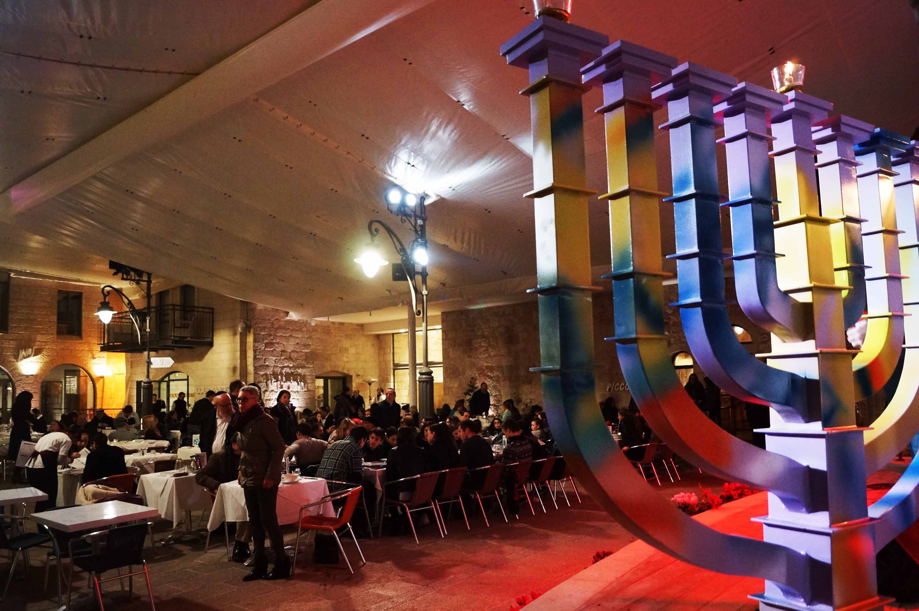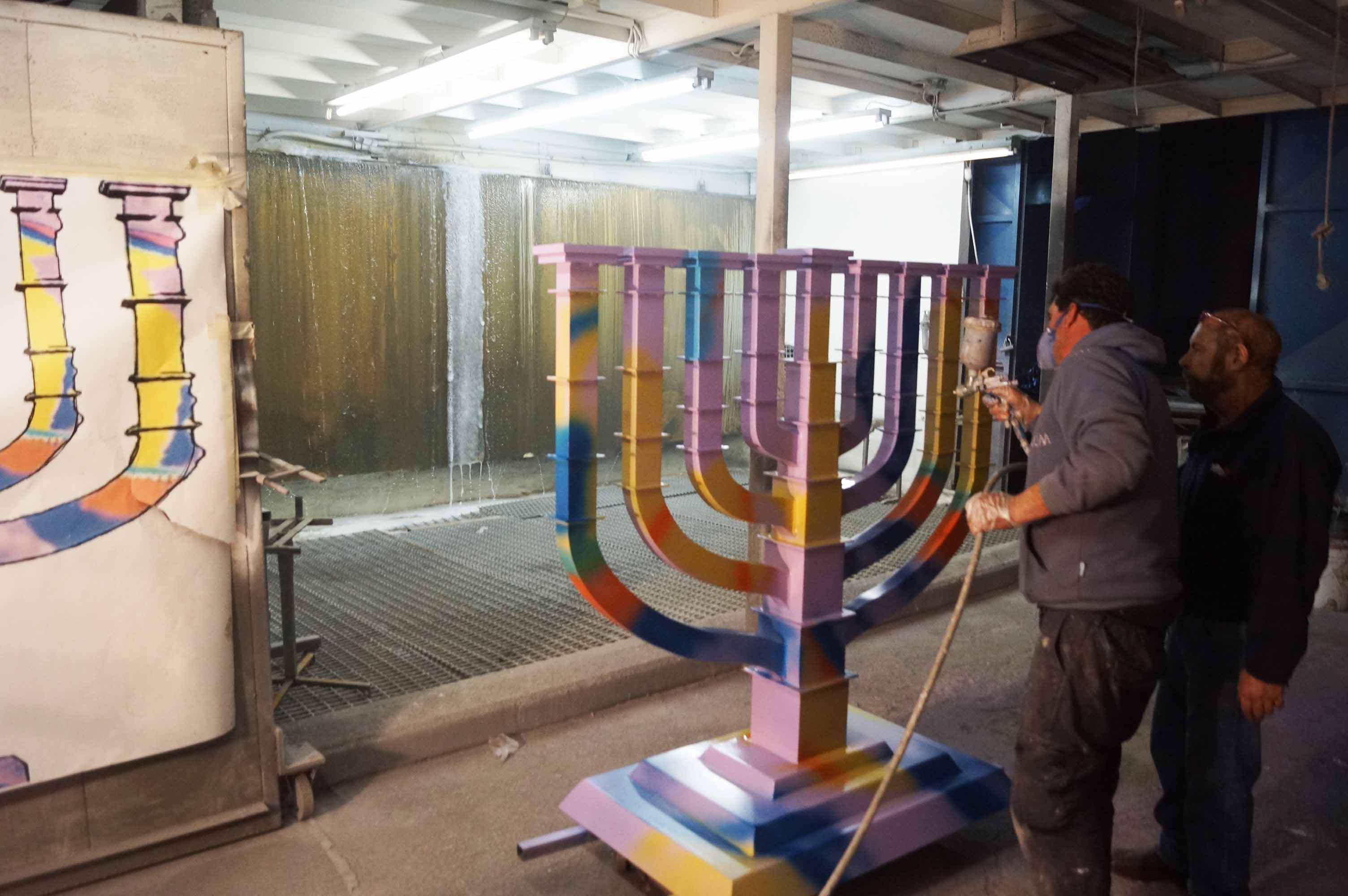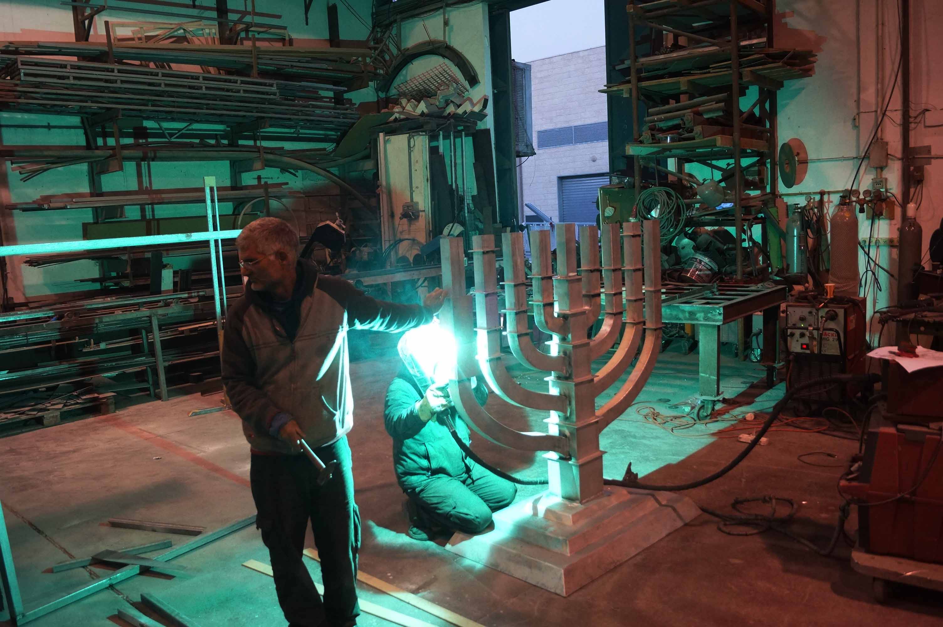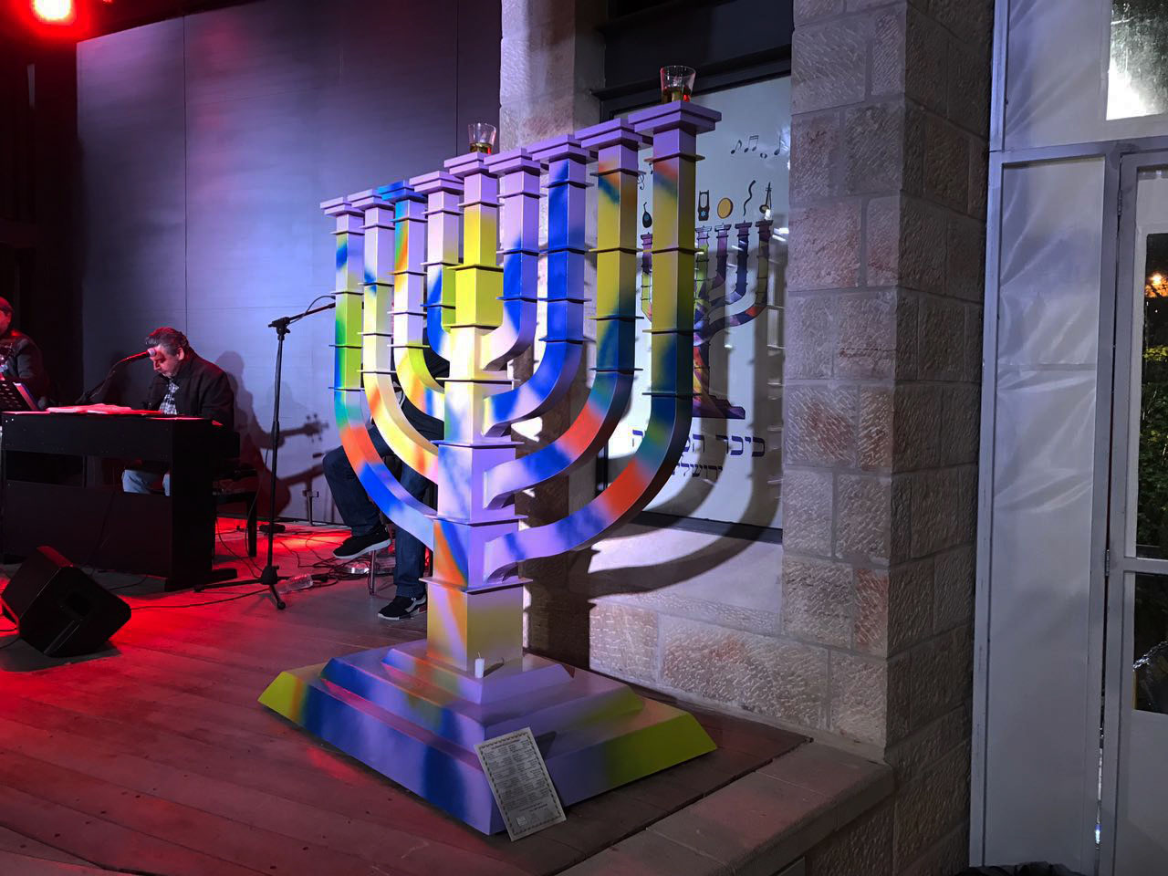 בניית חנוכיה ענקית מאלומיניום ברוח הלוגו של כיכר המוסיקה, לכבוד חג החנוכה 2016.