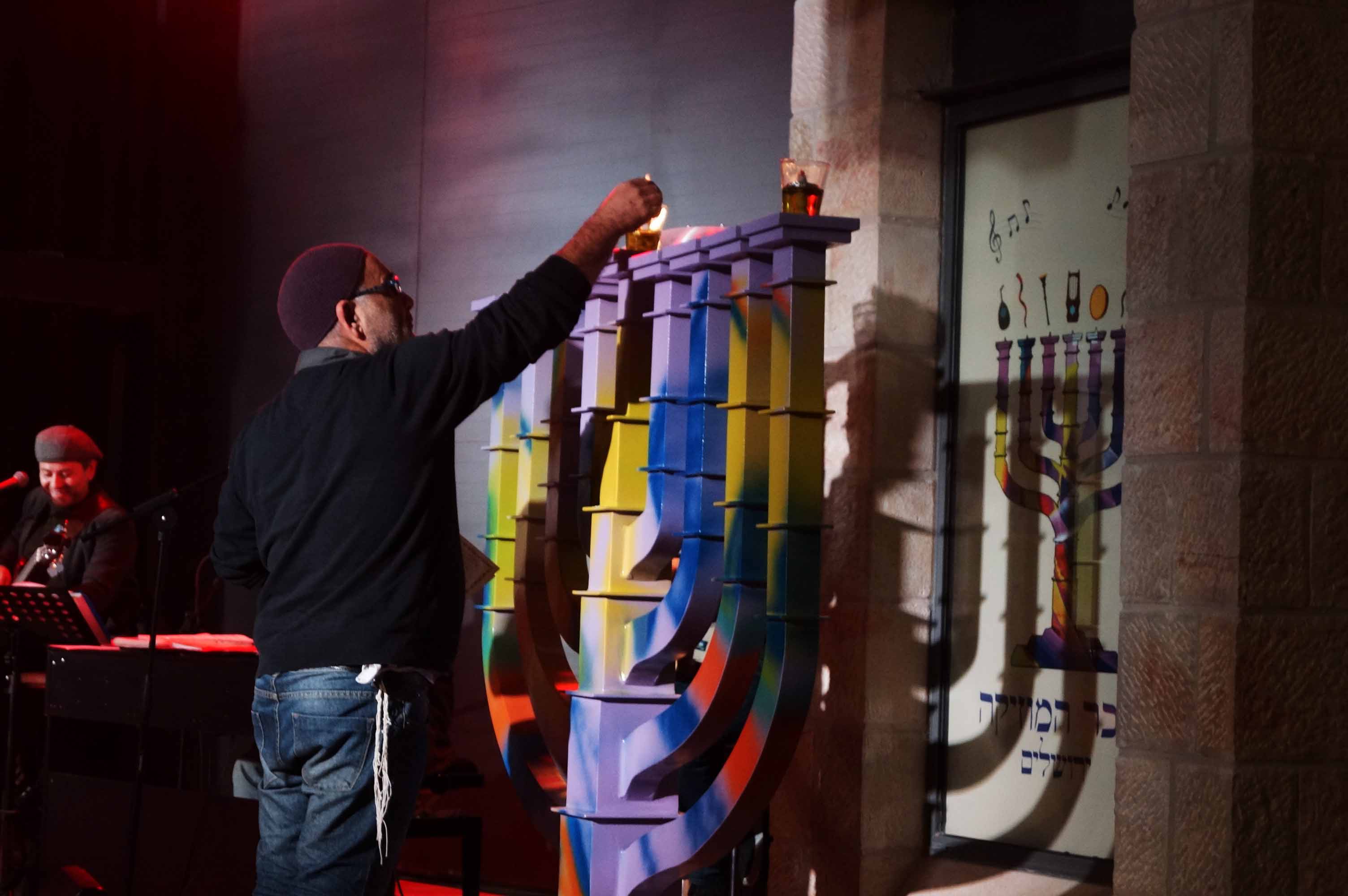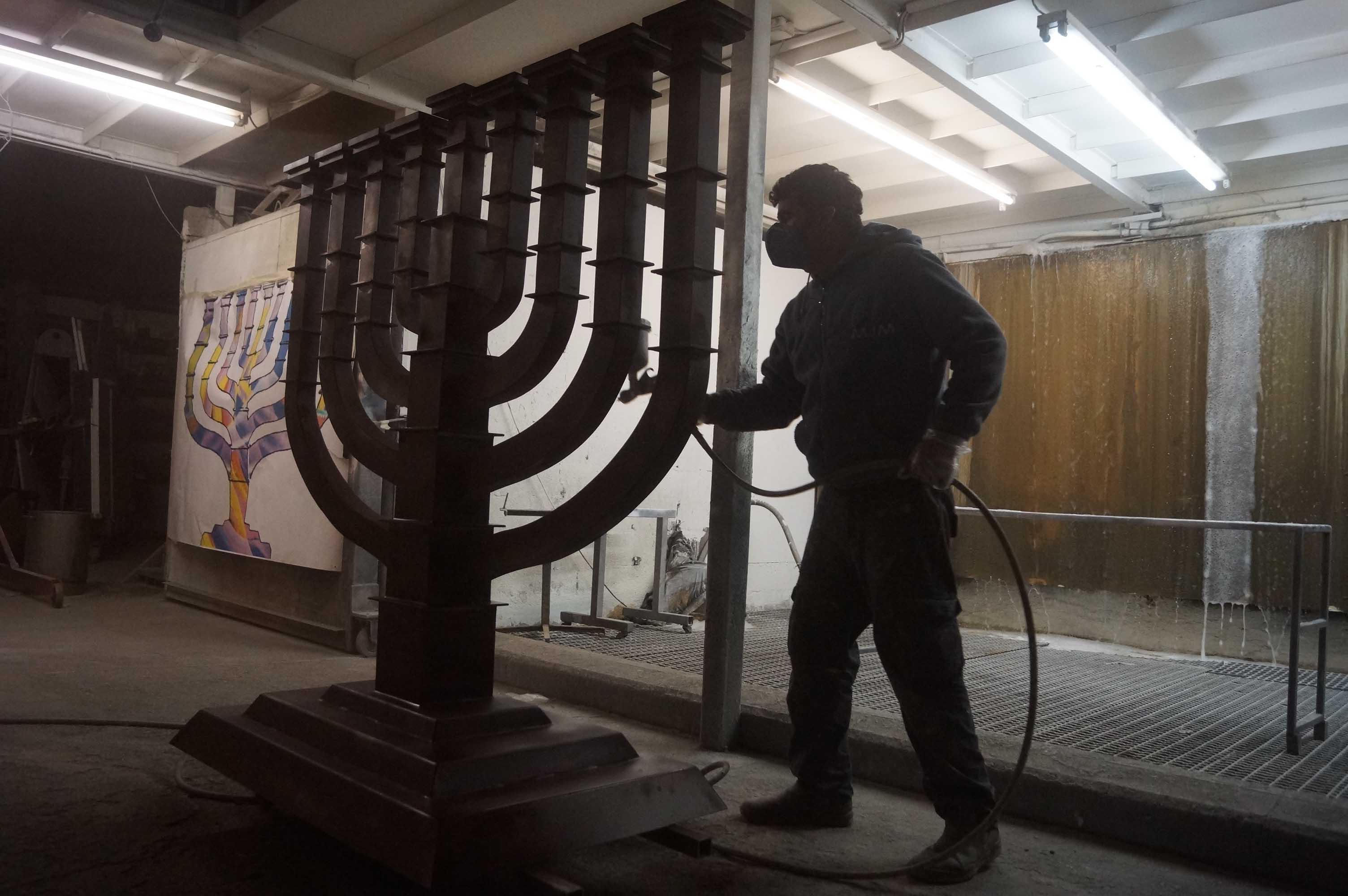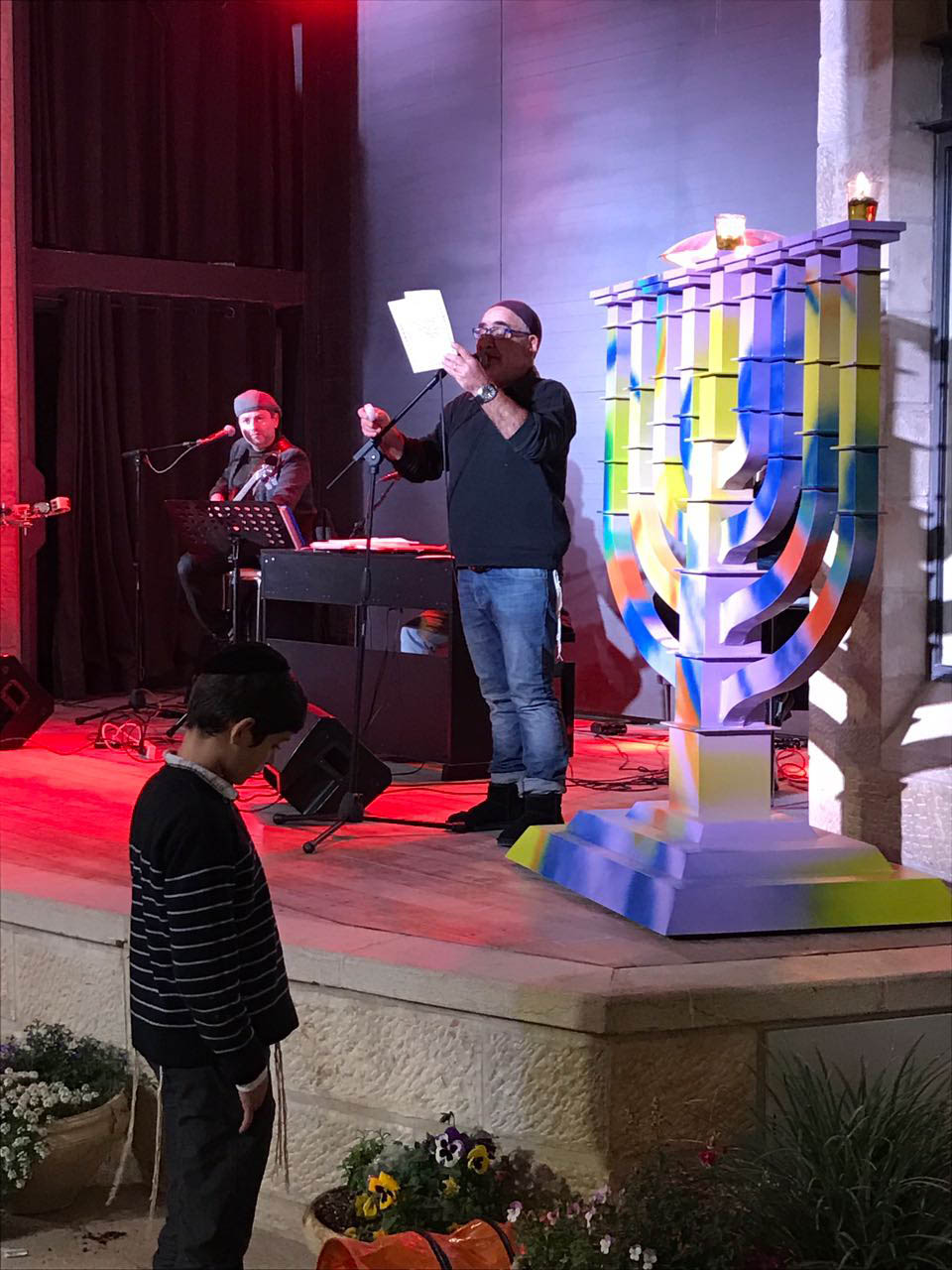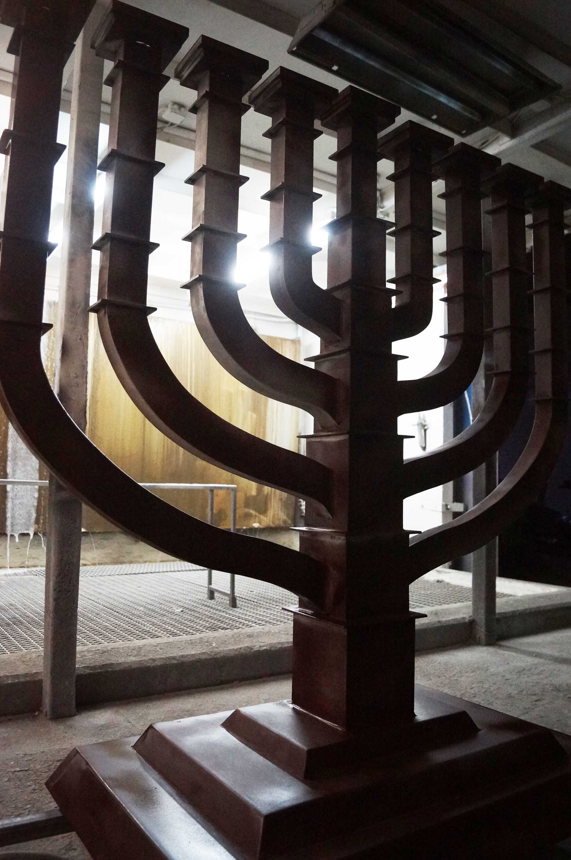 בניית חנוכיה ענקית מאלומיניום ברוח הלוגו של כיכר המוסיקה, לכבוד חג החנוכה 2016.