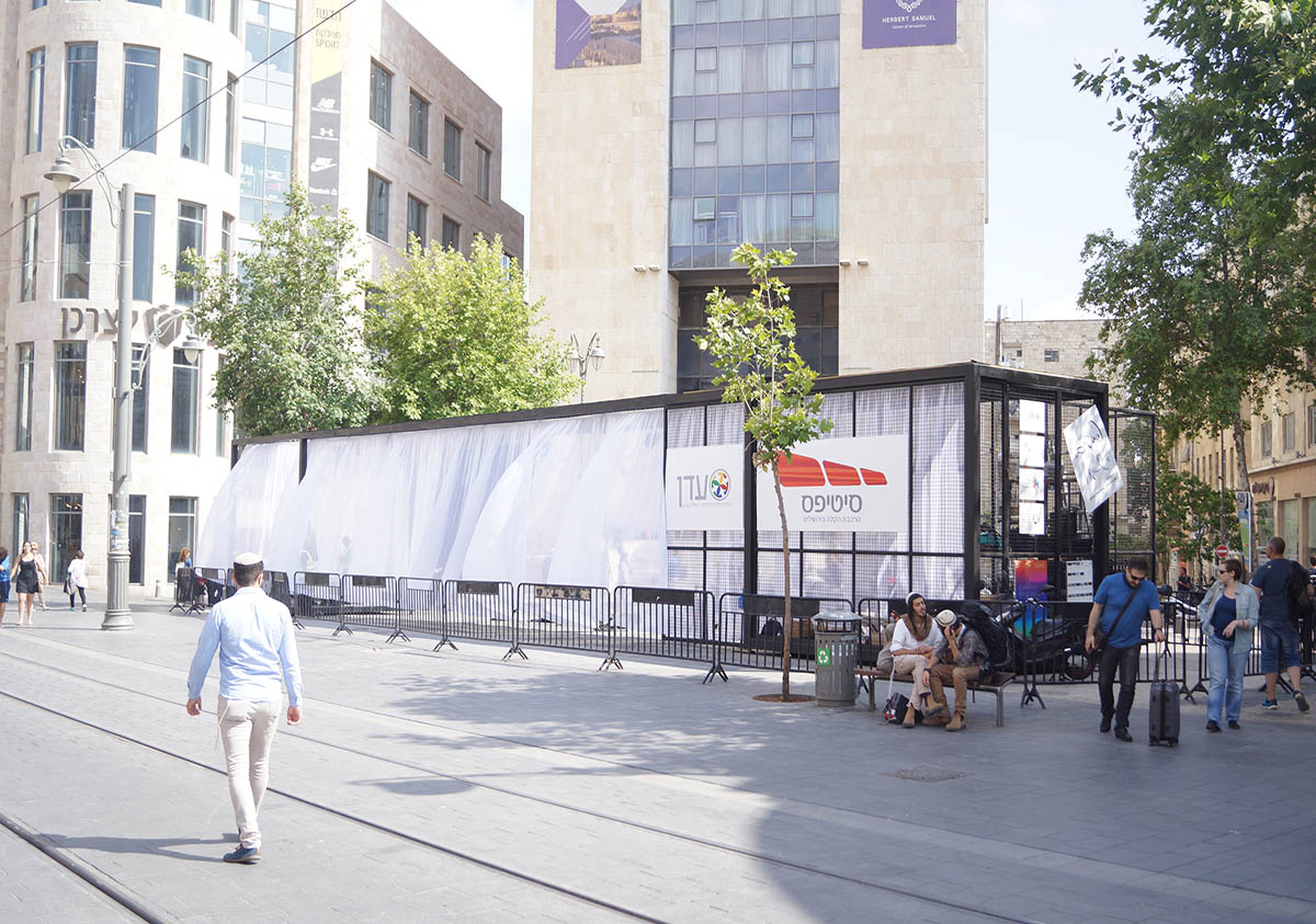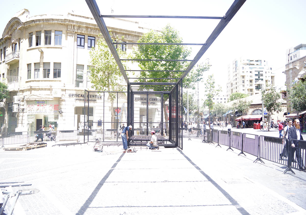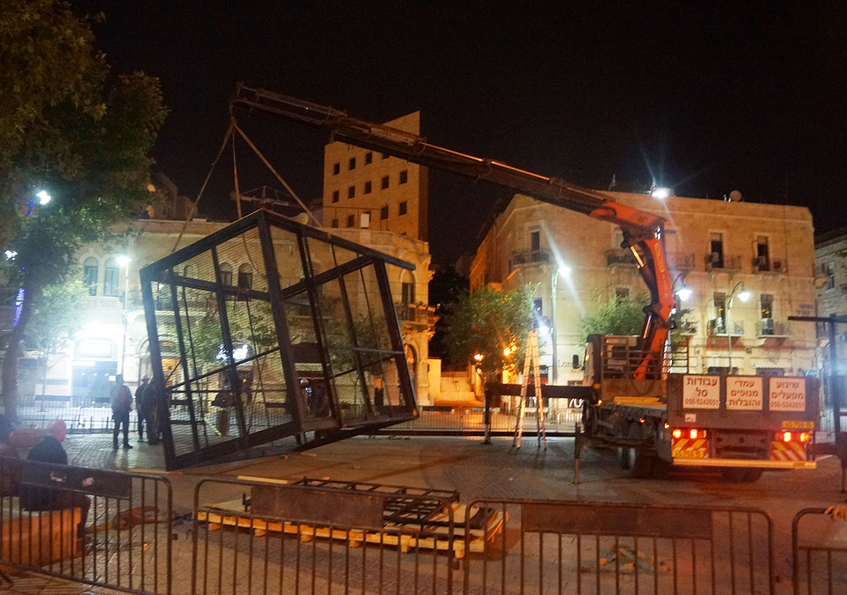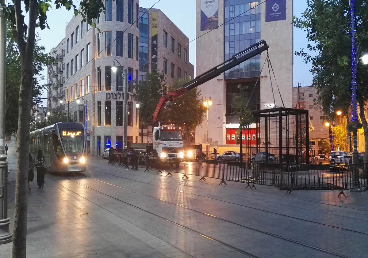 הקמת פביליון במסגרת פסטיבל ישראל בכיכר ציון בירושלים,