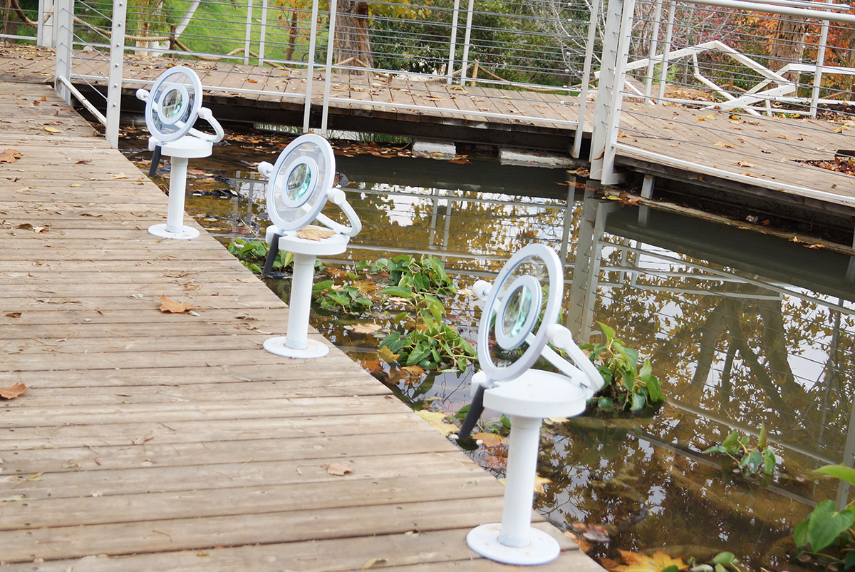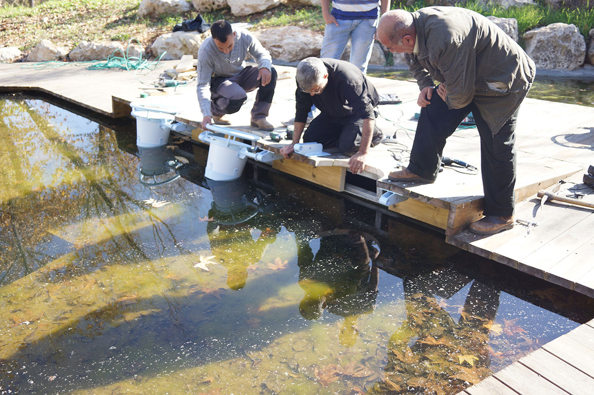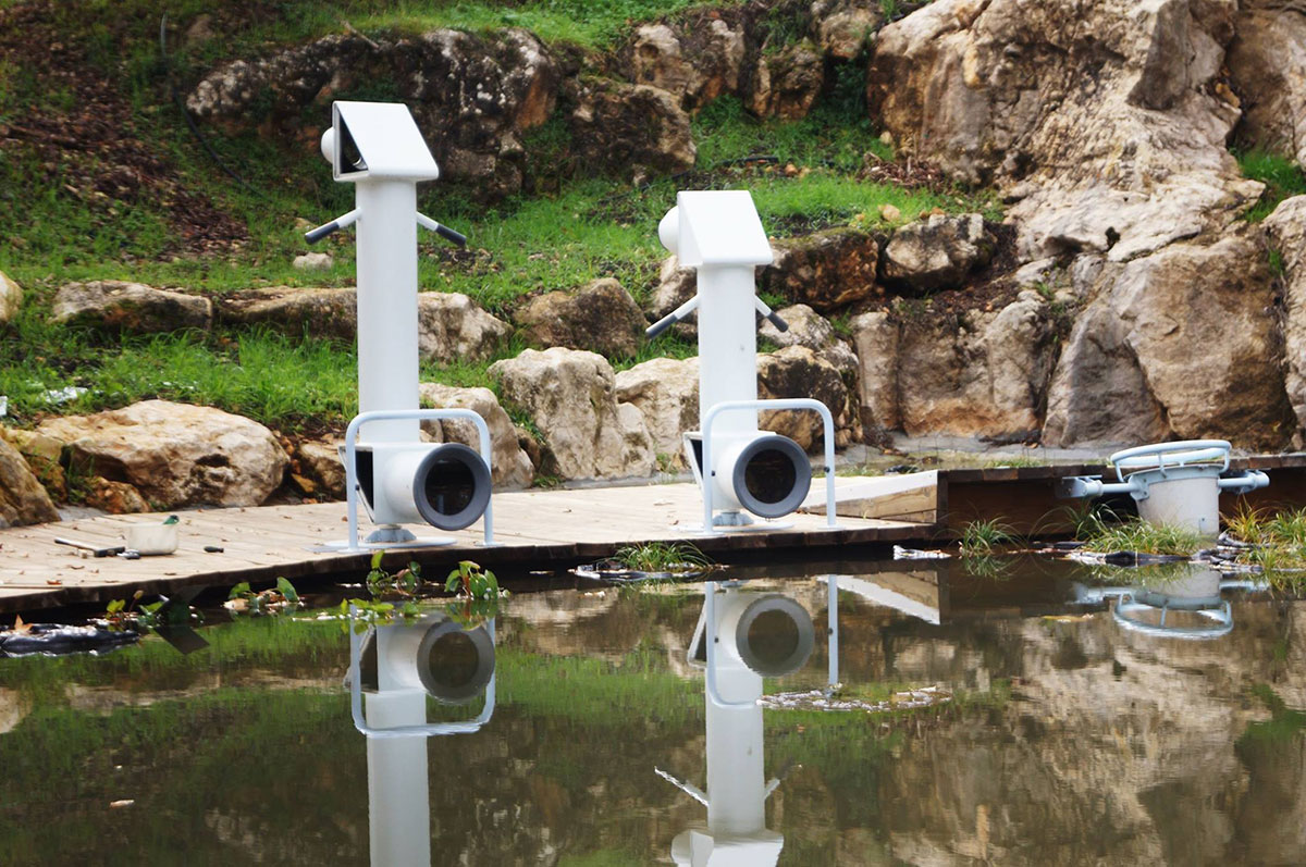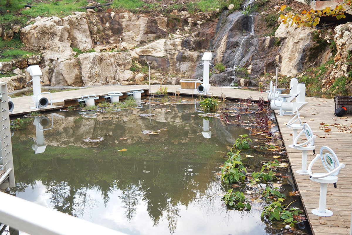 בניית אלמנטים מיוחדים הכוללים מראות טלסקופיות המאפשרות לחקור את מימי האגם המלאכותי בגן הבוטני בירושלים.