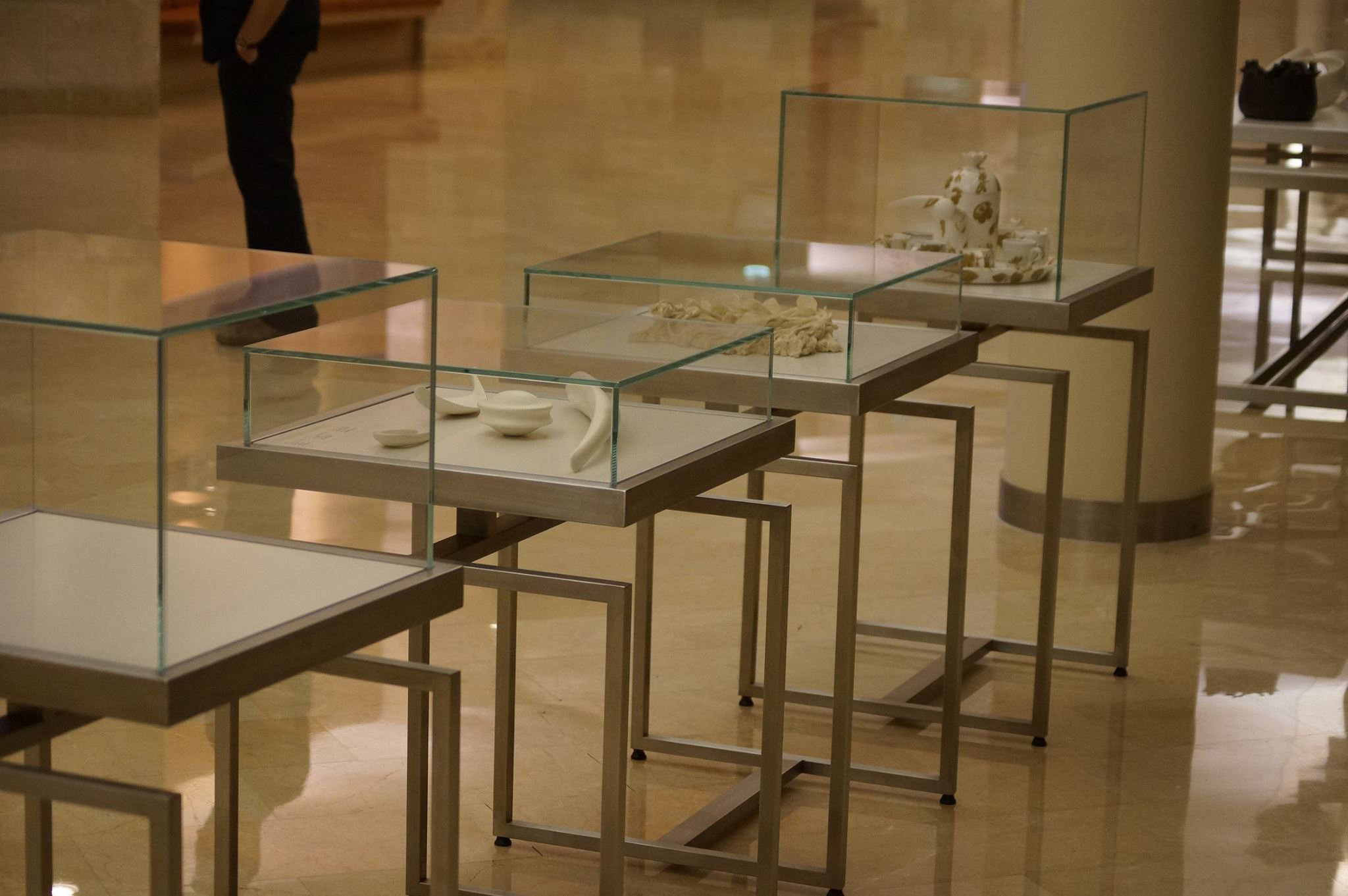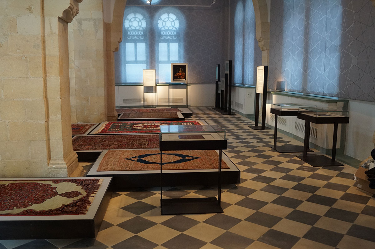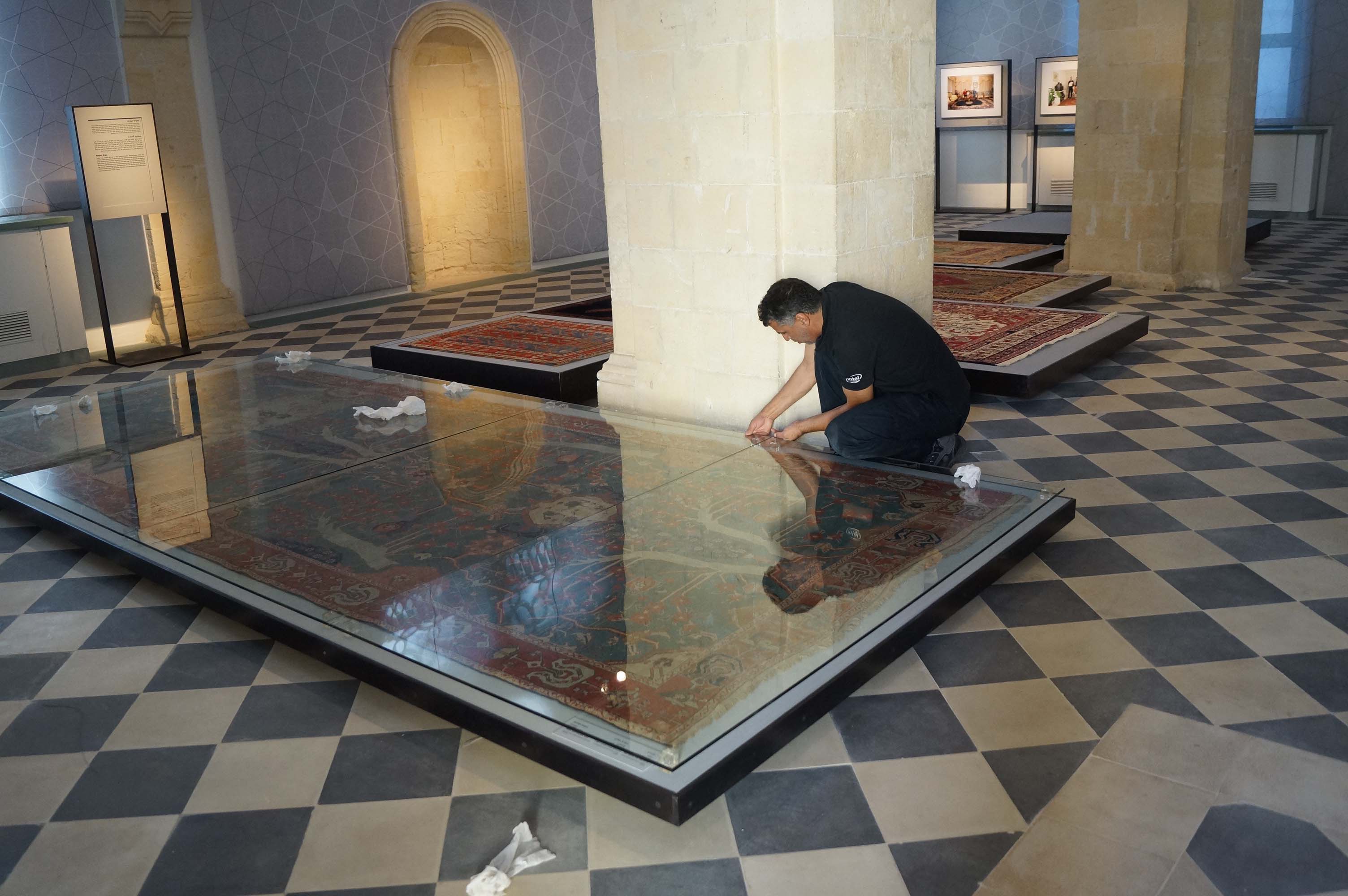 בניית במות, ויטרינות ושילוט אומנותי בתערוכה המציגה שטחים ואריגים מיוחדים ועתיקים מרחבי העולם.